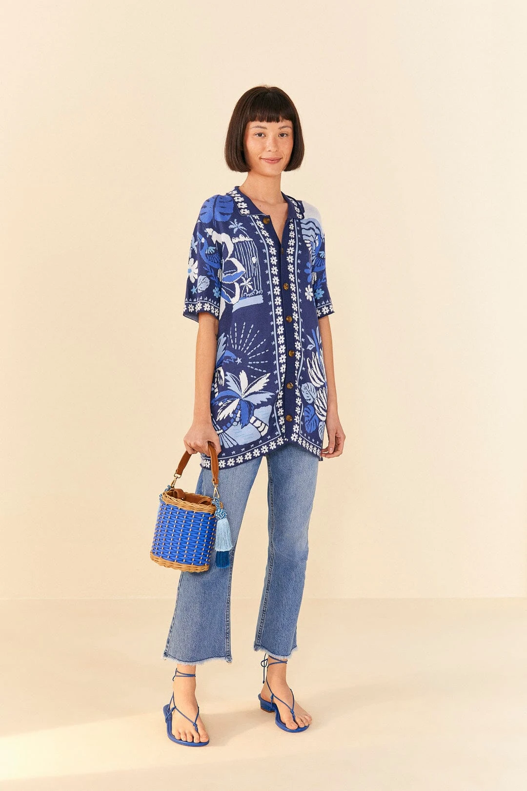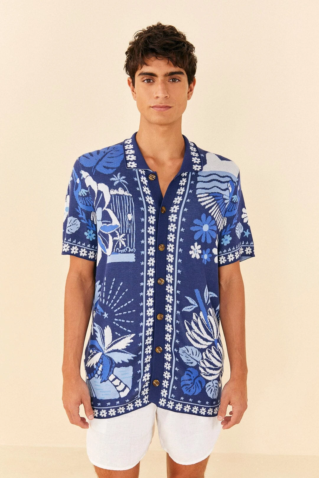 Breathe new life into your style with our Rio-inspired essentials. The Blue Rio Tiles Lenzing™ Ecovero™ Viscose Knit Shirt is here to get you ready for sunny days ahead, no matter the plan. It has an easy fit with versatile buttons and short sleeves, and the must-have print makes it look like your next wear-on-repeat staple. Mix it with standout bottoms, from jeans to skirts, cool sandals, and your carefree energy 🙂