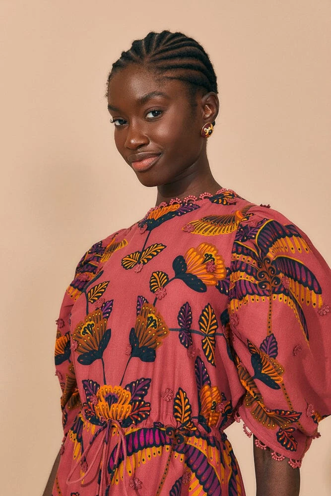 Embrace the beauty of nature with the Blush Living Bloom Short Sleeve Mini Dress, a romantic-yet-cool addition to your wardrobe. With its bold elbow-length sleeves and delightful center-back button placket, this mini dress is the perfect match between cozy & chic – a must-have for any season!