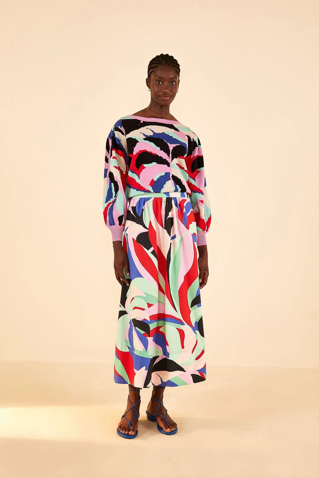 A fave that suits all nature-lover tastes, whatever the season, whatever the plan! The Colorful Monstera Knit Sweater comes as a warm hug to embrace you and your bold bottoms, from skirts to pants. It features the coziest silhouette with vibrant colors and ribbing for a snug feeling. So you just have to invite bright bottoms to complete your solar look. Come bright this way <3
