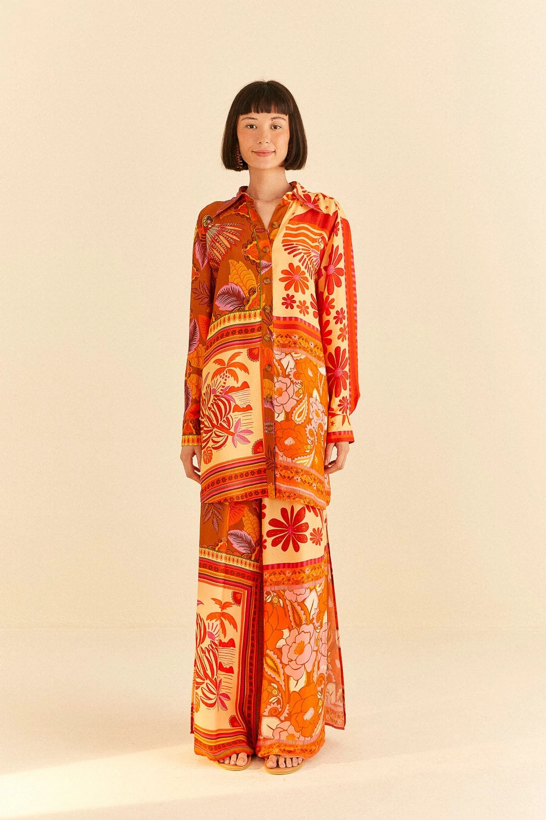 A boredom-free fave to evoke joy everywhere! The Forest Mixed Scarves Lenzing™ Ecovero™ Viscose Pants are not just a match to your tops but a piece to enjoy the sun all season long without losing comfort. It has a relaxed fit with an elastic waistline and fresh slits, and the Forest Mixed Scarves Lenzing™ Ecovero™ Viscose Crop Top is waiting to hang out with you and your fave bottom <3