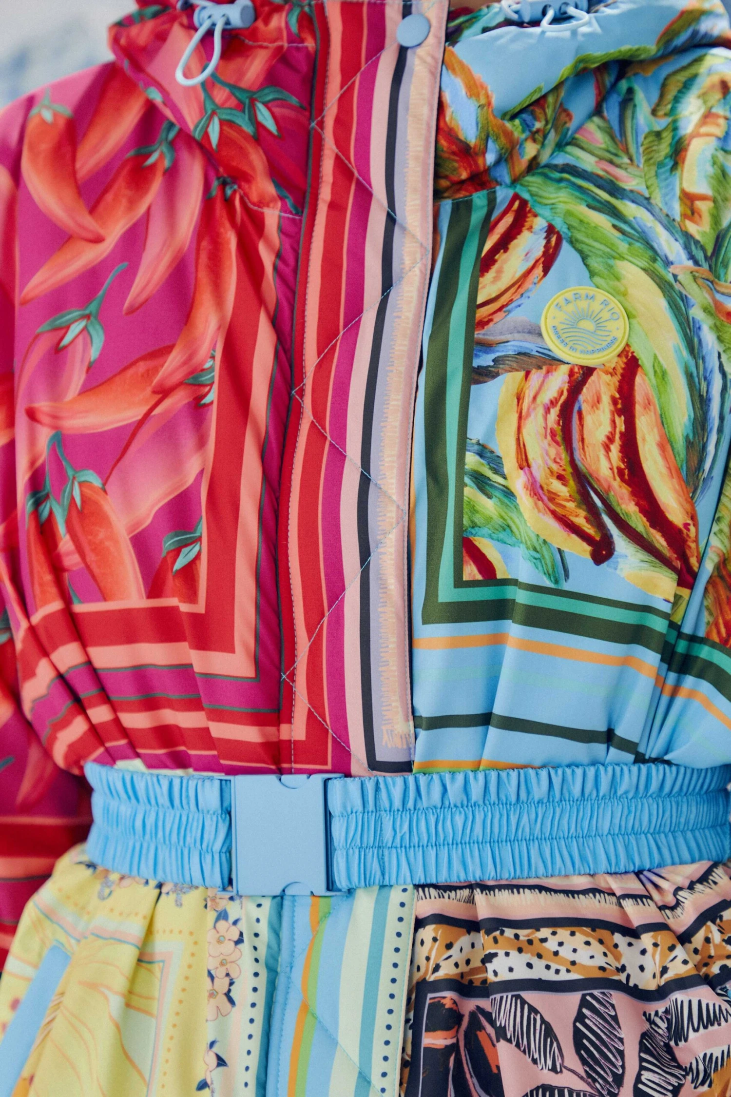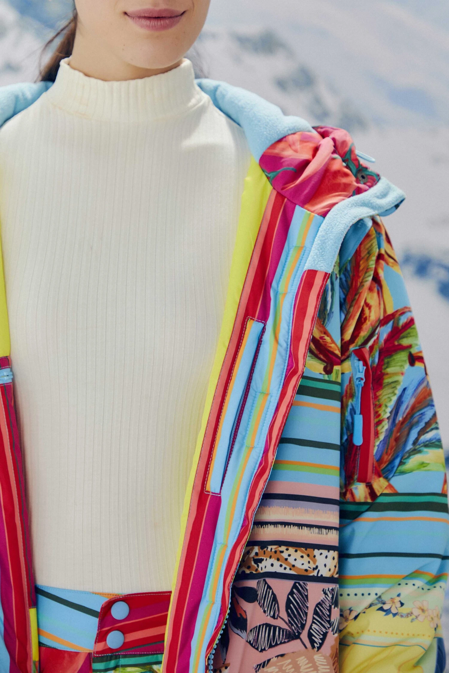 Our first-ever Skiwear Collection landed in Les 3 Vallées, the biggest ski area in the world. Surrounded by the most beautiful peaks, we launch pieces full of colorful prints that bring our carioca vibe to brighten up your adventures. So let’s explore the great outdoors while beating the cold in style on the slopes or during your après ski moments with puffer jackets, pants & jumpsuits that feature high-performance Graphene fibers and recycled polyester for insulation.