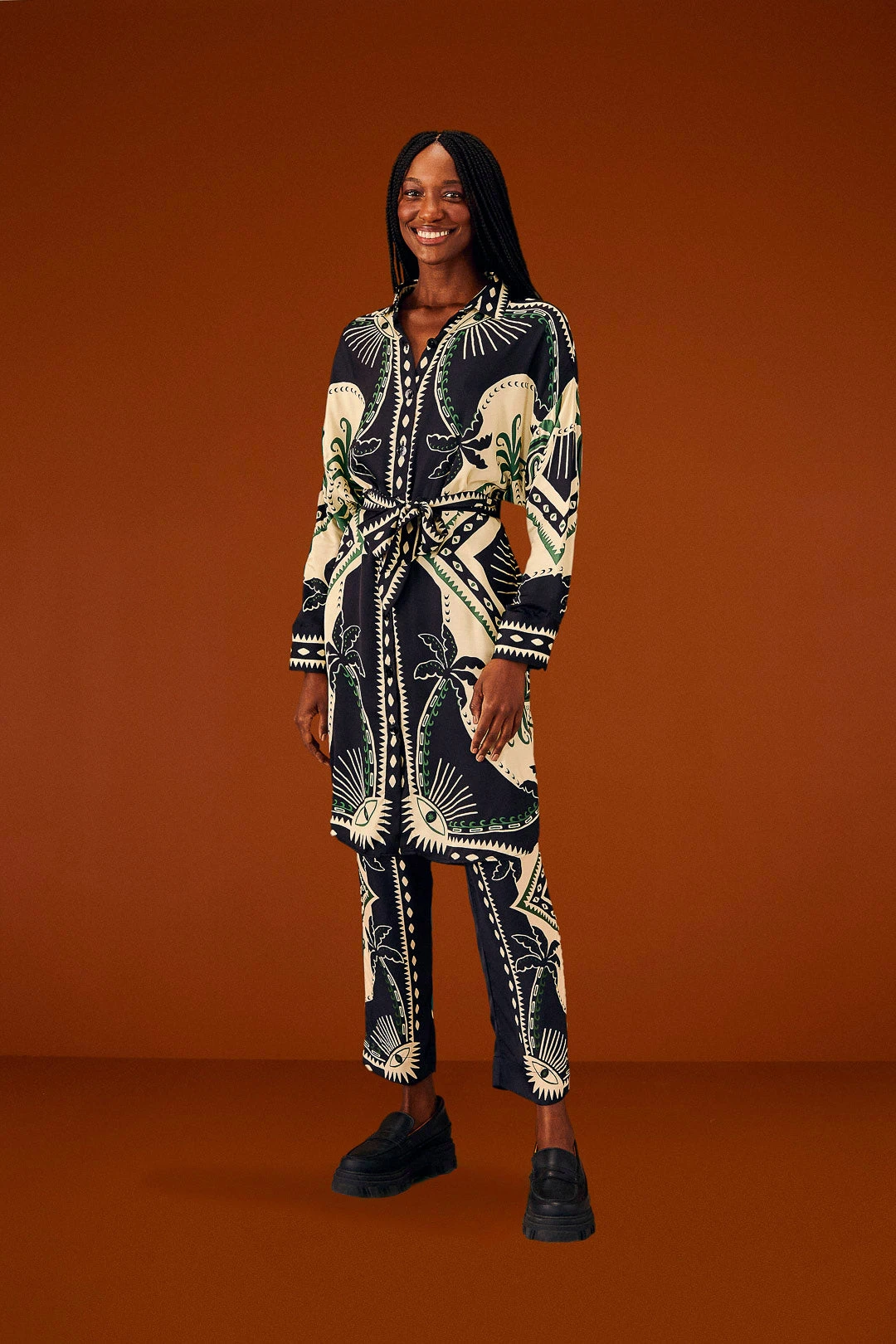 A timeless fave to elevate any occasion. The Mystic Scarf Lenzing™ Ecovero™ Viscose Pants bring a classic silhouette that embraces you and follows your bold moves at the same time. It has ties with beaded tassels, and the print is an invite to get the best of all plans coming your way. Btw, the Mystic Scarf Lenzing™ Ecovero™ Viscose Shirtdress goes very well with your new fave pants <3 So also invite your FARM Rio Shoes and go have fun all around!