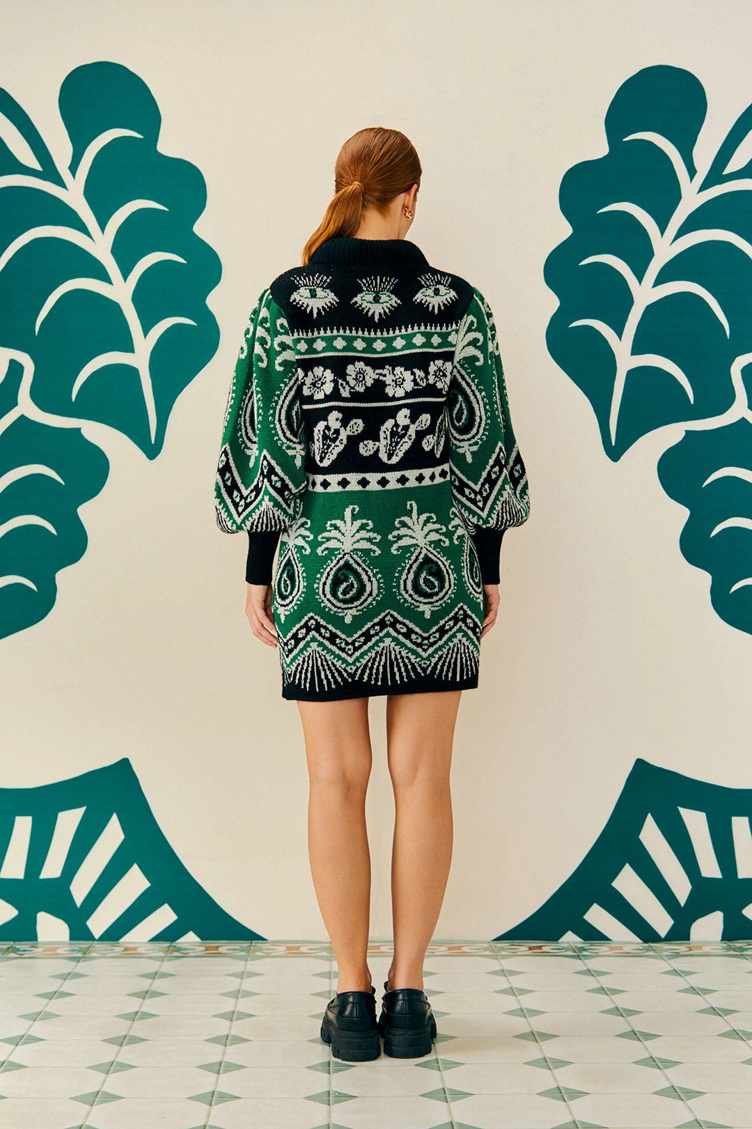 A timeless fave to elevate any occasion. The Mystic Scarf Sweater Dress brings a classic silhouette that embraces you and follows your bold moves at the same time. It has a snug neckline, long sleeves to deal with the breeze, and the print is an invite to get the best of all plans coming your way. So invite your bold FARM Rio Shoes to have fun all around!
