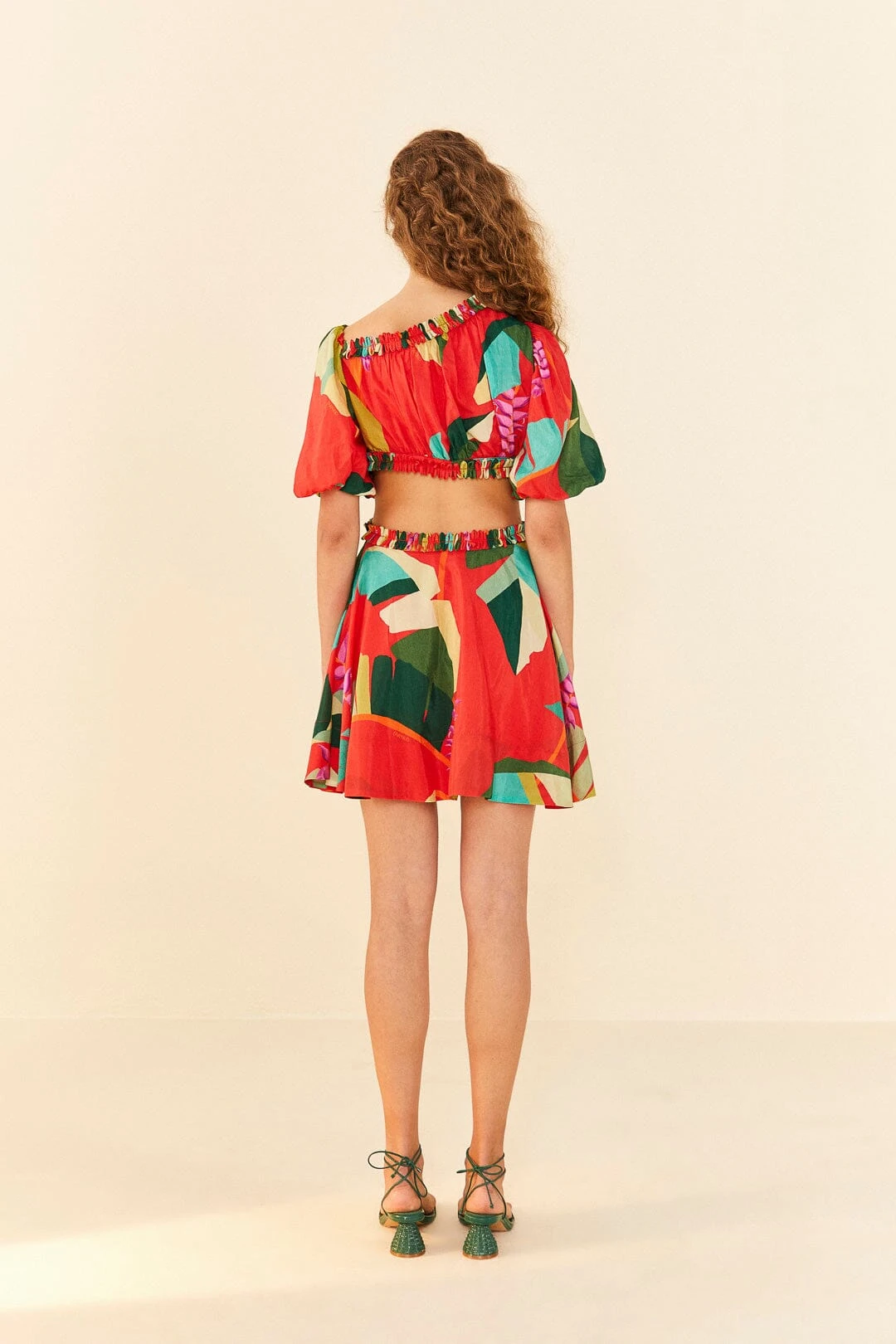 A fave that follows your tropical, fresh moves! The Red Heliconia Mini Dress is here to fit all nature-lover tastes with its nature-inspired print in a flowy silhouette. It features cut-out detailing at the neckline and waistline, puff sleeves, and a mini length to reintroduce your legs to solar days. You can invite not just cool shoes but also handmade accessories to hang around with you and your new wardrobe staple. Go shine, baby!