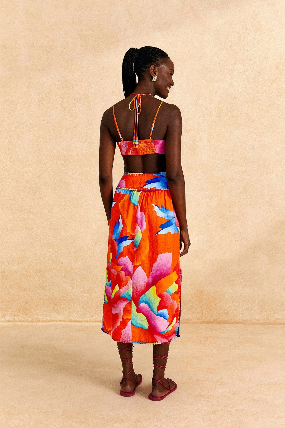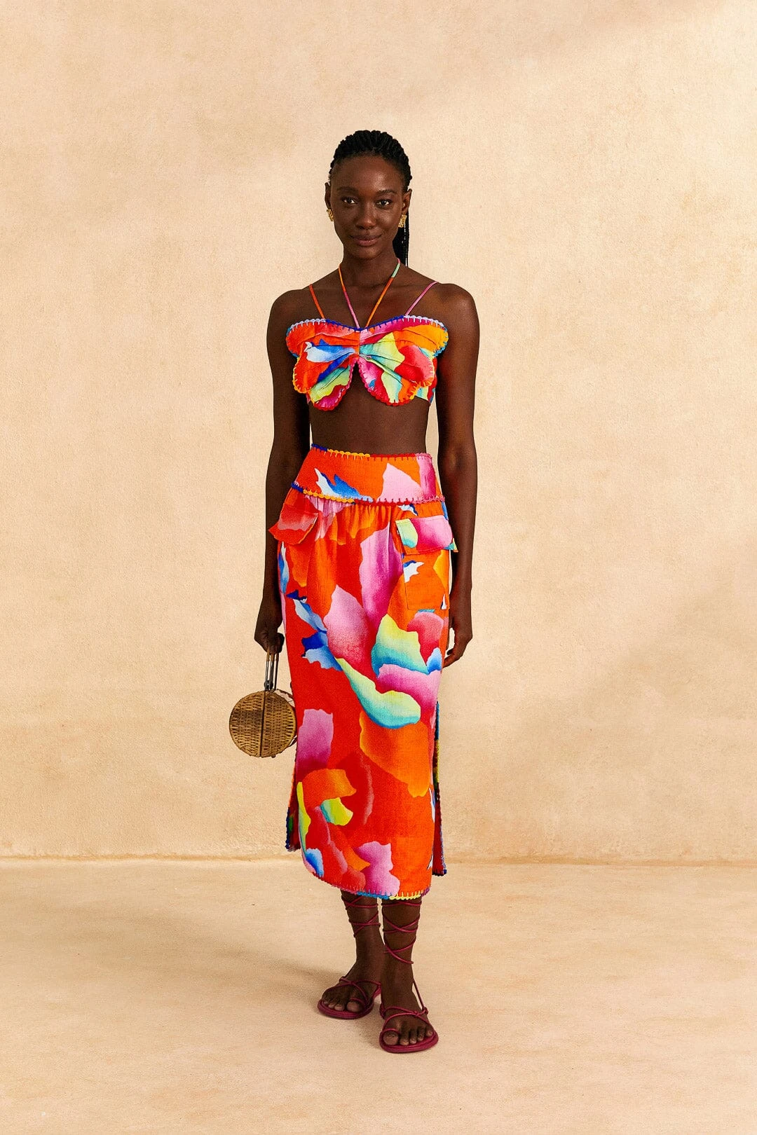 When Summer calls for tropical, breezy faves, you can answer in the Red Ombre Chita Top. It features a butterfly-shaped applique and beaded tassels in its far-from-ordinary silhouette that hugs you without losing comfort. Your new top matches the Red Ombre Chita Midi Skirt, your bold FARM Rio Shoes – from sandals to sneakers to Havaianas flip-flops – and your accessories to effortlessly walk you through the season on the brightest side!