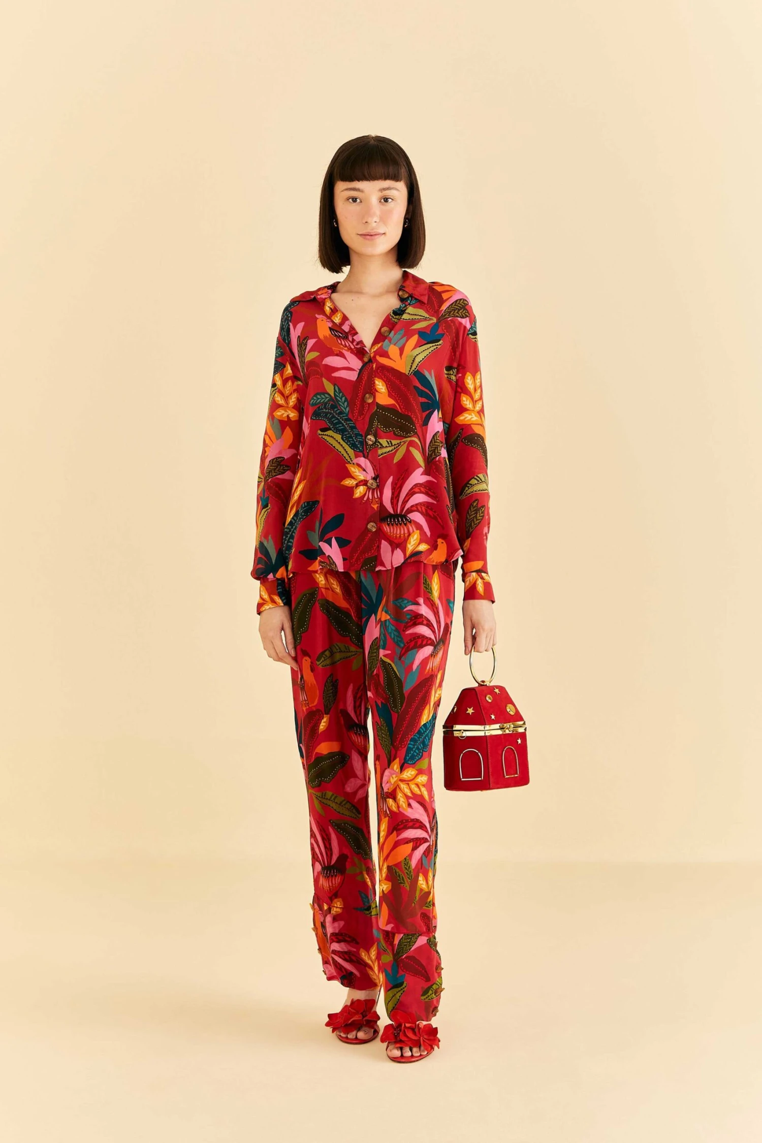 Be the tropical event of the mid-season with our Red Rooster Leaves Long Sleeve Shirt. The tailored top piece is here to make a cozy-yet-chic statement with its nature-inspired print and comfy fit. Its collar neckline and center front buttons give it a classic vibe. Match it with your go-to