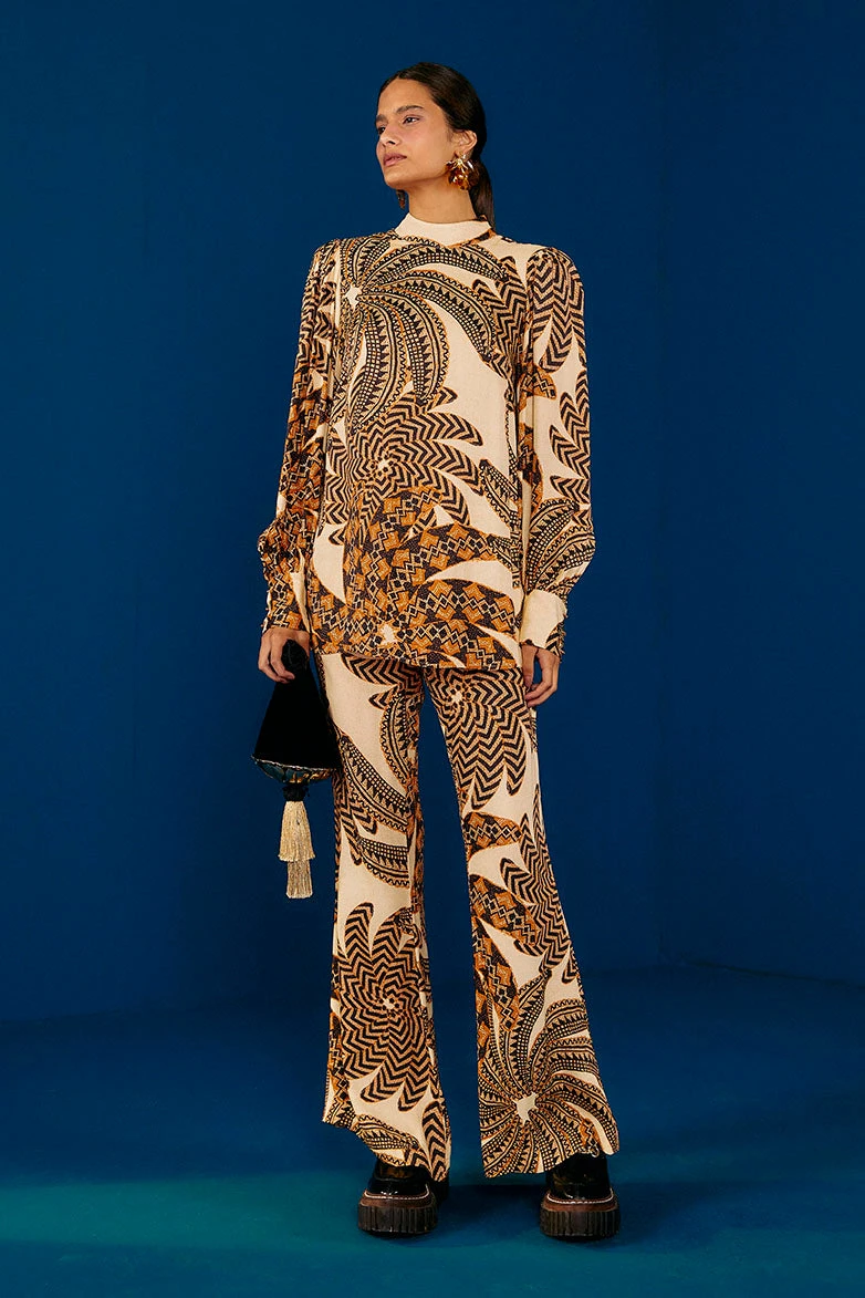 Farm Rio Sand Yawanawa Banana Lenzing™ Ecovero™ Viscose Blouse