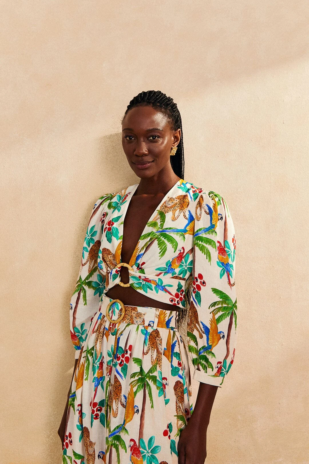 It’s time to pick your nature-inspired scenario to wear on repeat. The Tropical Paradise Crop Top is here to get you Summer-ready, from work meetings to date nights (and all cool plans in between!). It features a skin-showing bodice with a plunging neckline that has a WOW bamboo buckle and fresh sleeves. So what are you waiting for to invite the Tropical Paradise Midi Skirt, standout shoes, and accessories to hang all around? Go shine, baby!