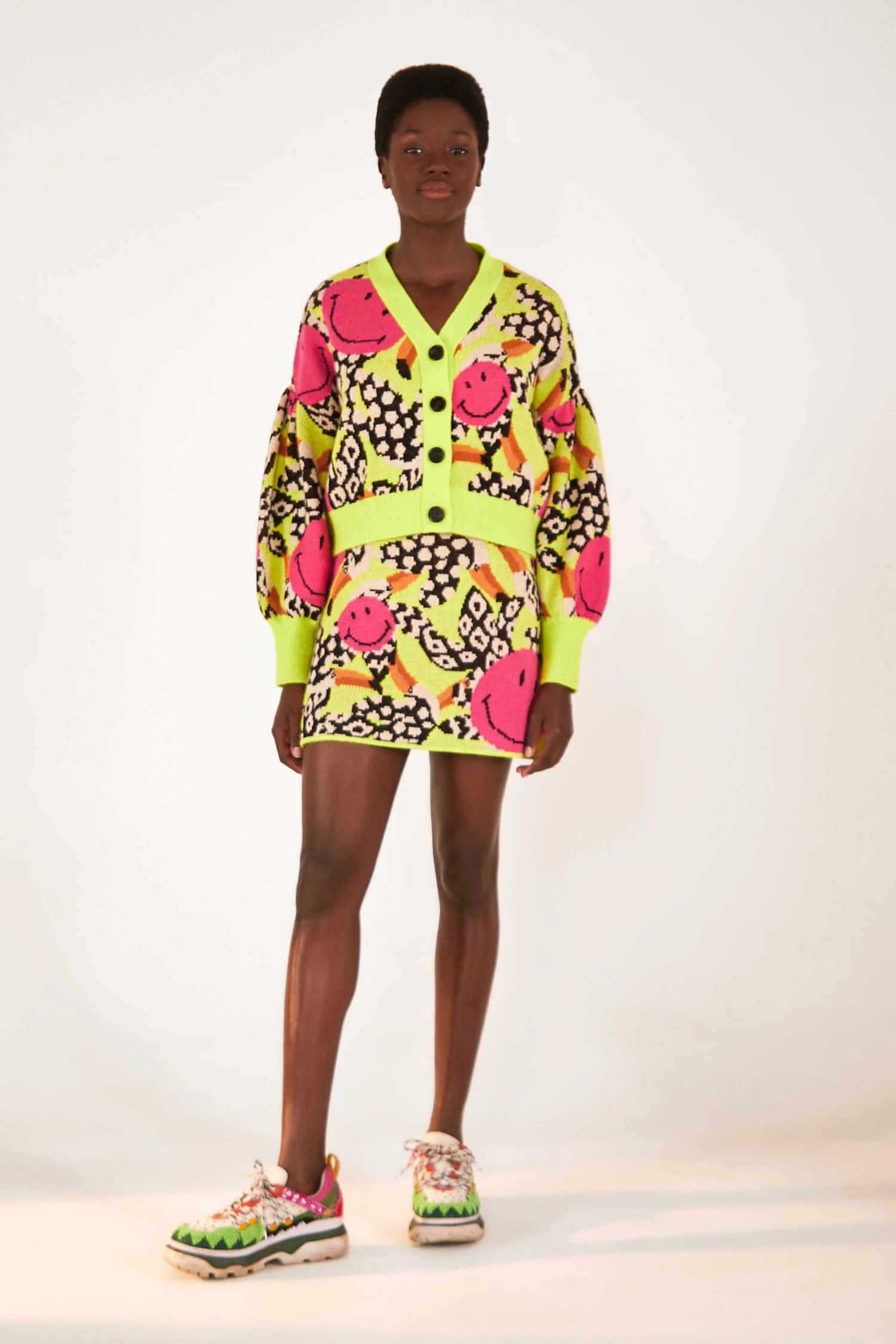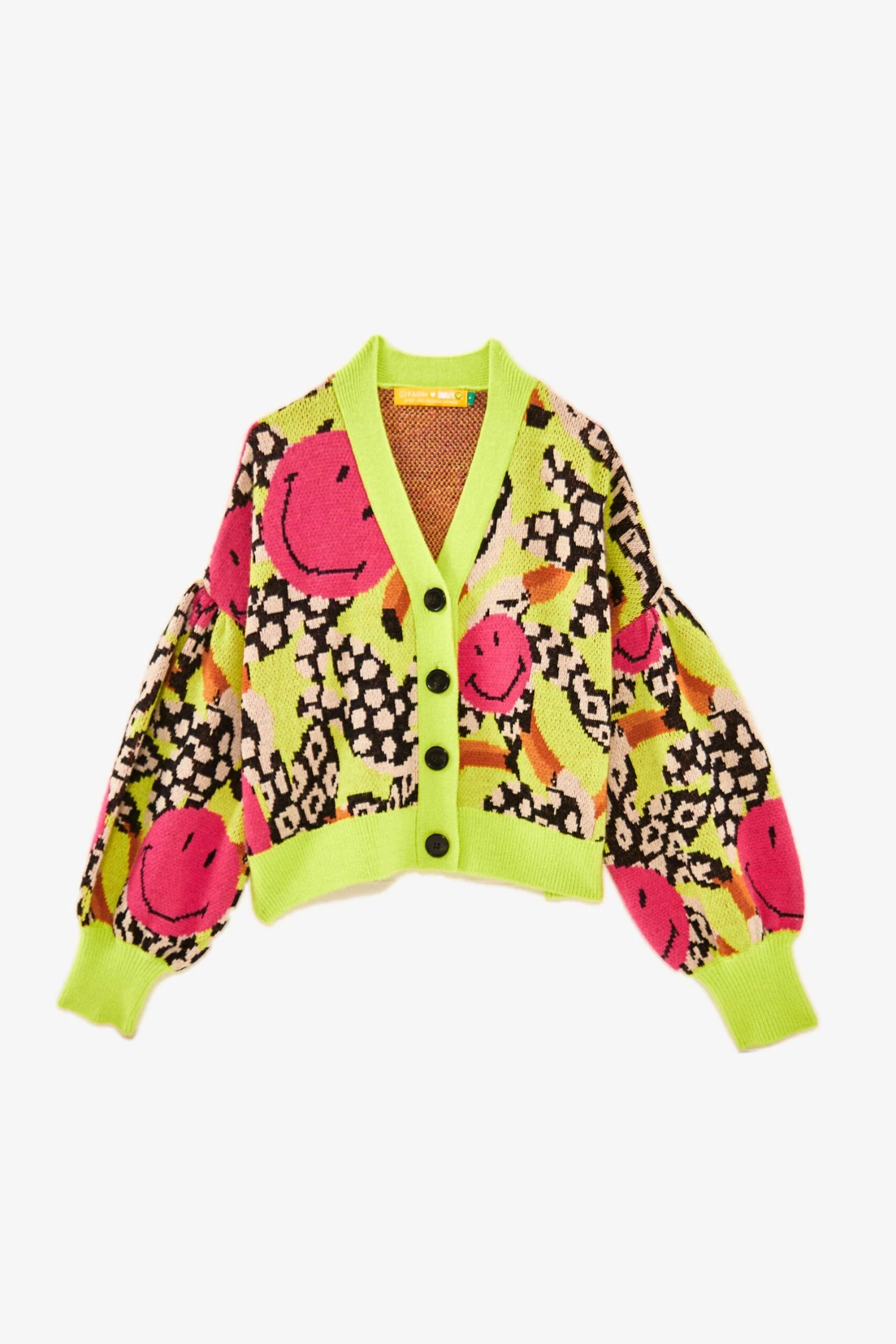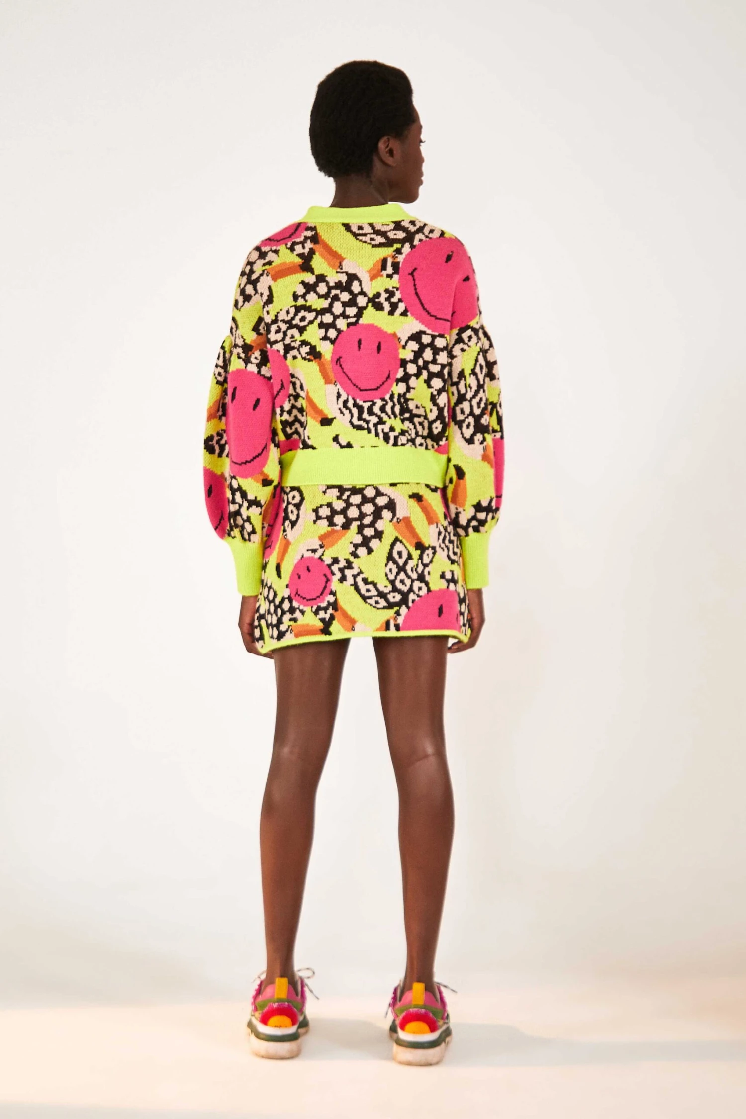 Your season is off to a happy start! The Tucanissimo Smiley® Cardigan is here to add more fun to your outfits with its pop color palette in the coziest fit. So invite your bottoms to spread joy all around, whatever the plans, with high doses of optimism (btw, the Tucanissimo Smiley® Mini Skirt is the perfect match!).