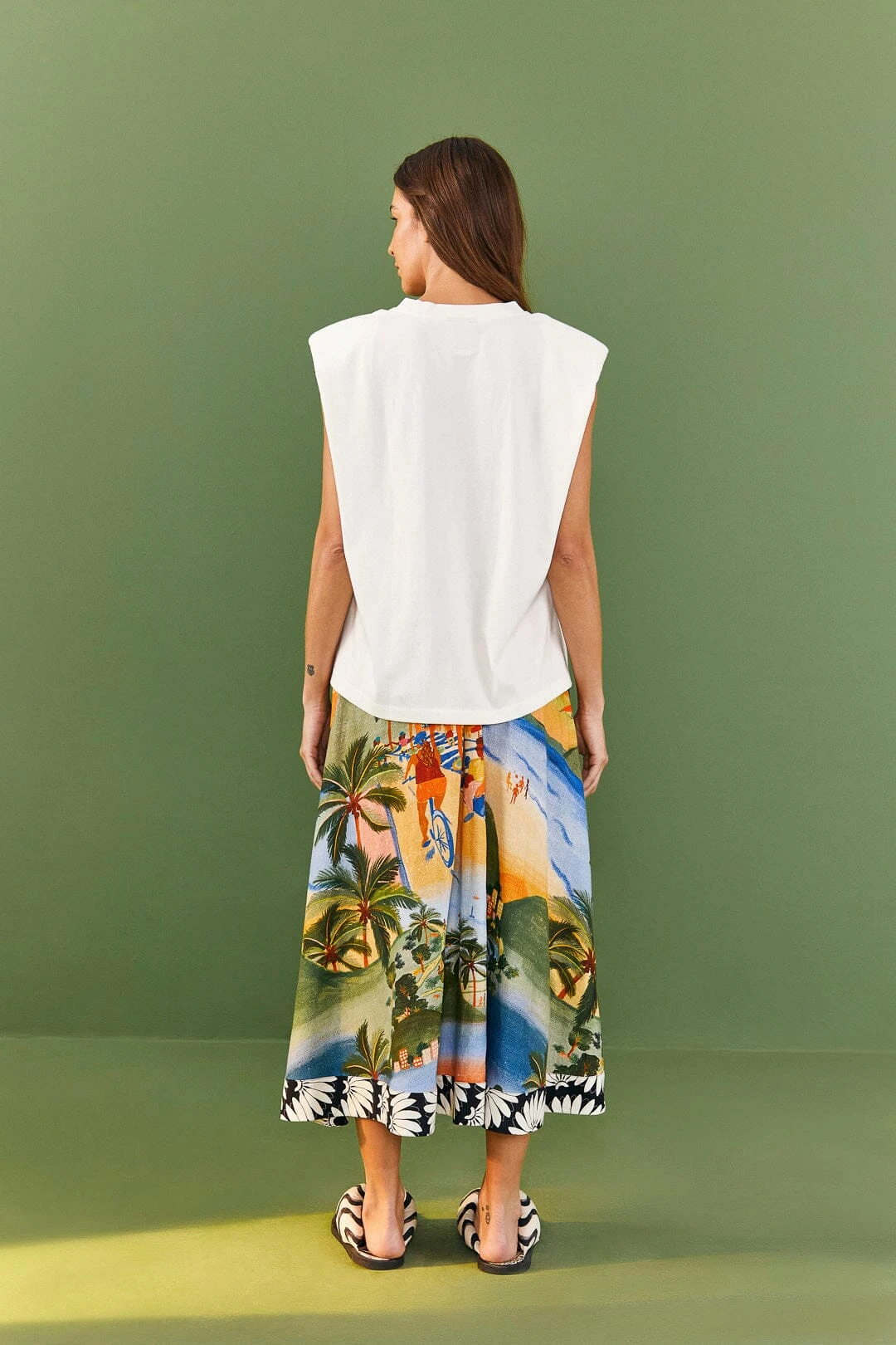 Sometimes you can stay in your comfort zone! The White Copacabana Organic Cotton T-Shirt is the new definition of a cozy fave: both the shape and the Rio-inspired print will walk you through joyful plans, and the padded shoulders are a WOW detail. Invite all your bottoms to have fun, from pants to shorts to overalls (and every fresh style in between!).